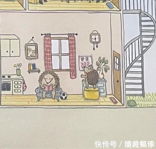 一楼右边的刺猬家与封面差不多一样唯一不一样的是闹钟的时间而之前忘了照片也是一个传递信息刺猬家一共有几口人而从照片来看觉得应该是刺猬爸爸亲了刺猬妈妈小刺猬在爸爸妈妈中间就能感受到小刺猬被爸爸妈妈的爱包围着而且一家人最幸福的体现是爸爸爱妈妈妈妈爱爸爸爸爸妈妈爱着宝贝宝贝也爱着爸妈。说明小刺猬生活在幸福家庭里所以爸爸出远门了他做了一个时间表格每天都在用心的数着爸爸什么时候回来未完待续明天继续#绘本##绘本阅读##绘本阅读指导师##经典绘本#